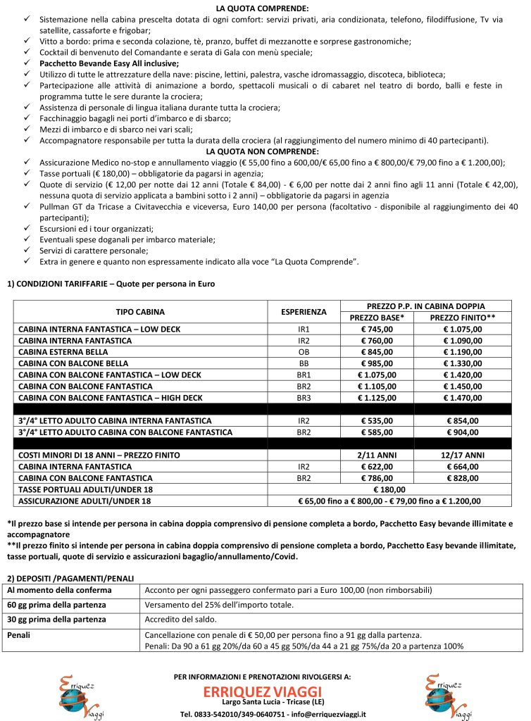 17/01/2026 / Ultimo aggiornamento : 17/01/2026 Antonio Uncategorized CROCIERA NEL MEDITERRANEO (Palma di Maiorca, Barcellona, Cannes, Genova, La Spezia) Un suggerimento per regalarsi un’occasione di relax e una sana “distrazione” condita di cultura e divertimento! Prenorazioni entro Gennaio 2026. \ Get the latest news / FacebookXBlueskyHatenaCopy Lascia un commento Annulla rispostaIl tuo indirizzo email non sarà pubblicato. I campi obbligatori sono contrassegnati *Commento * Nome * Email * Sito web Salva il mio nome, email e sito web in questo browser per la prossima volta che commento.